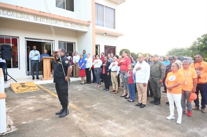 El Factor, María Trinidad Sánchez – Con un emotivo discurso basado en la figura y legado de Juan Pablo Duarte, el alcalde de El Factor, Oscar Pablo Sánchez, presidió este lunes un solemne acto de izamiento de la bandera que marcó el inicio de las actividades oficiales en honor al Padre de la Patria.