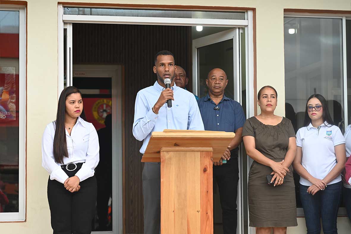 El evento, celebrado en la explanada frontal del Ayuntamiento, contó con la presencia de representantes del distrito educativo y de diversos centros de enseñanza, así como de la Policía Nacional, el Cuerpo de Bomberos, la Defensa Civil y colaboradores de la alcaldía.