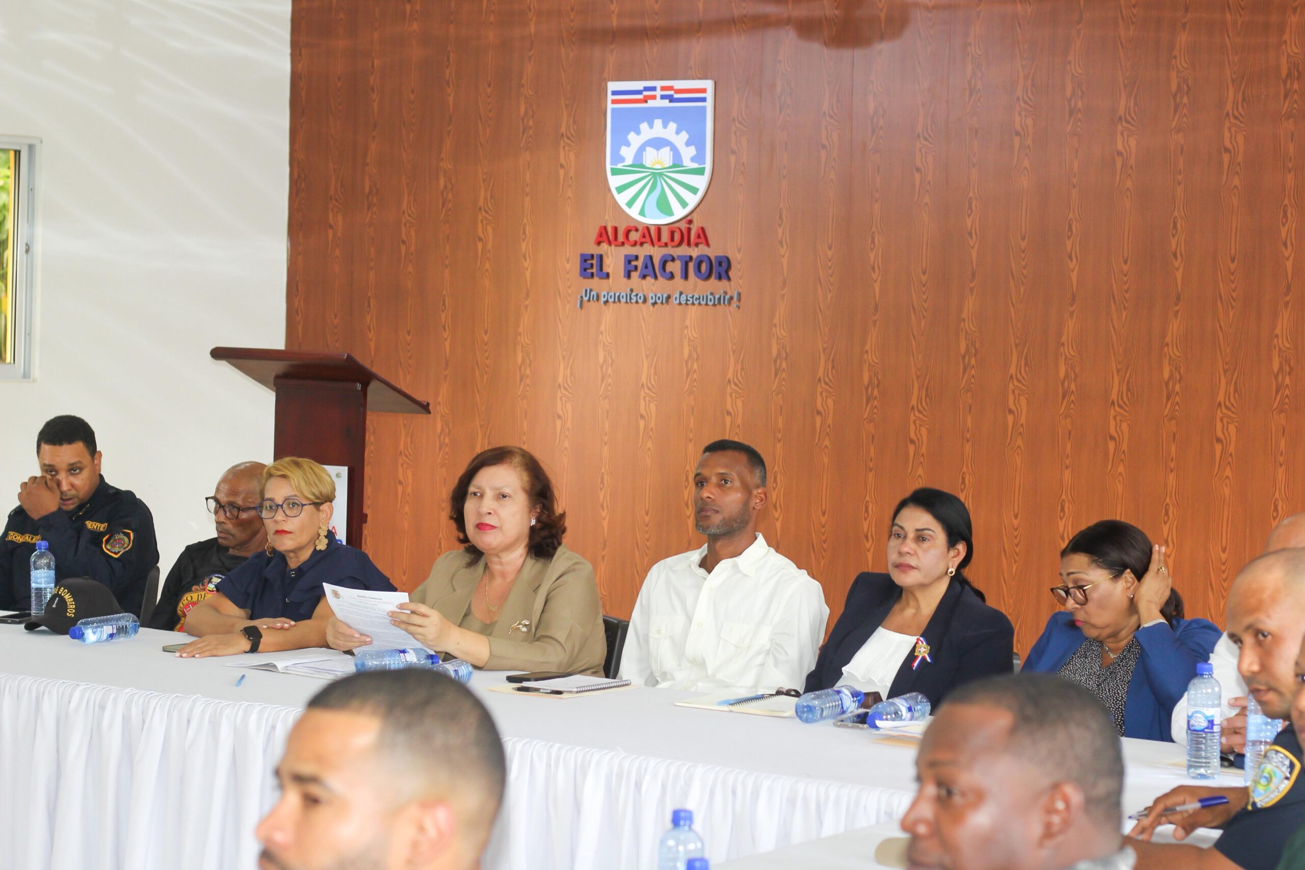 Durante la sesión, celebrada en la sede del Ayuntamiento de El Factor, participaron delegados de la Policía Nacional, el Ministerio de Turismo, el Ministerio de Deportes, el Cuerpo de Bomberos, la Defensa Civil, el Consejo Nacional para la Niñez y la Adolescencia (CONANI), juntas de vecinos y miembros activos de la sociedad civil organizada.